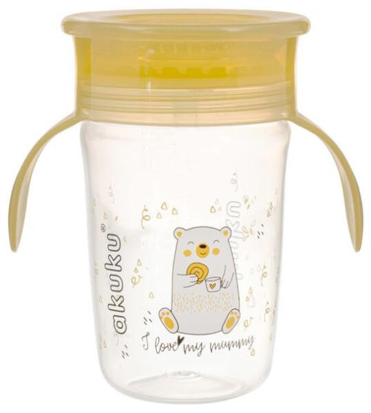 AKUKU Tanulópohár szilikon itatócsőrrel, 360°-os, jegesmaci, sárga füllel (ipa360s)