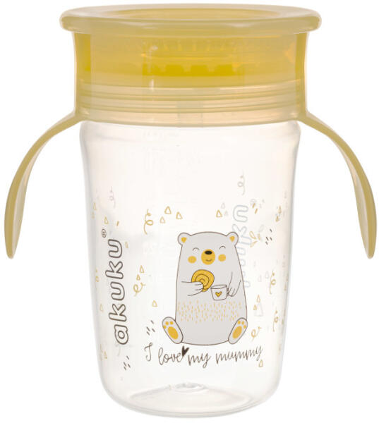 AKUKU Tanulópohár szilikon itatócsőrrel, 360°-os, jegesmaci, sárga füllel - perfectlife