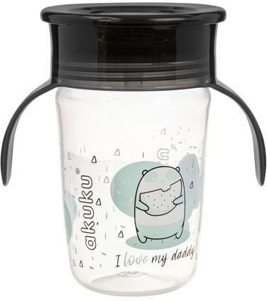 AKUKU Tanulópohár szilikon itatócsőrrel, 360°-os, pandamaci, fekete füllel - diaper
