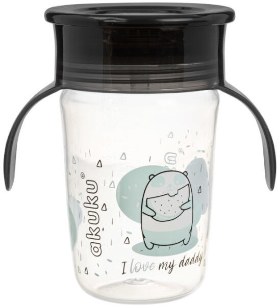 AKUKU Tanulópohár szilikon itatócsőrrel, 360°-os, pandamaci, fekete füllel - perfectlife