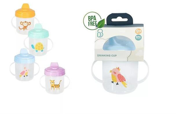 BPA-mentes műanyag csőrös itatópohár 4 színben aranyos mintákkal.