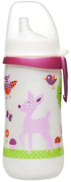 Nip, First Cup 330 ml-es itatópohár, puha csőrrel, antikólikus szeleppel, mely megelőzi a levegőnyelést. Könnyű váltás az önálló ivásra. Lányos színben, 12 hónapos kortól.