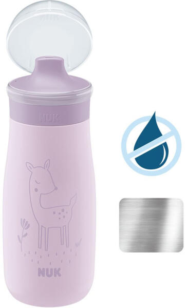 Gyerek itatópohár NUK Mini-Me Sip rozsdamentes acél 300 ml (9+ m. ). Az új NUK Mini-Me Sip itatópohár 9 hónapos kortól alkalmas gyermekek számára. Praktikus és stílusos egyben. Az itatópohár törhetetlen műanyaga több mint 90%-ban természetes alapanyagokból készül. Az innovatív itatópohár játékosan ellenáll a gyermekek fogainak. Egyértelmű elkötelezettség a fenntarthatóság és a minőség iránt.