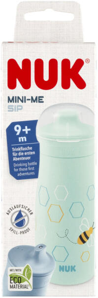 NUK Mini Me Sip cumisüveg, fix ivórésszel, szivárgásmentes, 300 ml, 9 hónapos kortól, BPA mentes. A törhetetlen műanyag több mint 80 % -ban fenntartható anyagokból készült.