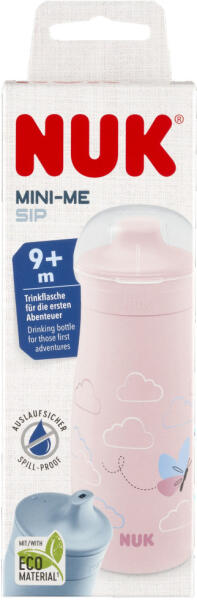 NUK Mini Me Sip cumisüveg, fix ivórésszel, szivárgásmentes, 300 ml, 9 hónapos kortól, BPA mentes. A törhetetlen műanyag több mint 80 % -ban fenntartható anyagokból készült.