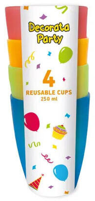 Színes Party műanyag pohár 4 db-os szett 250 ml